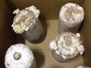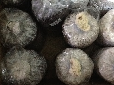 3月底透過GOMAJI團購買了10包香菇太空包(珊瑚菇3包、藍寶石菇3包、鮑魚菇3包、黑木耳1包),因為滿十包免運費,所以一包只要59元。送來時已經有2包珊瑚菇冒出菇體了(但因為第一次種沒經驗,還不知道應該要馬上拔掉上面的棉花)。